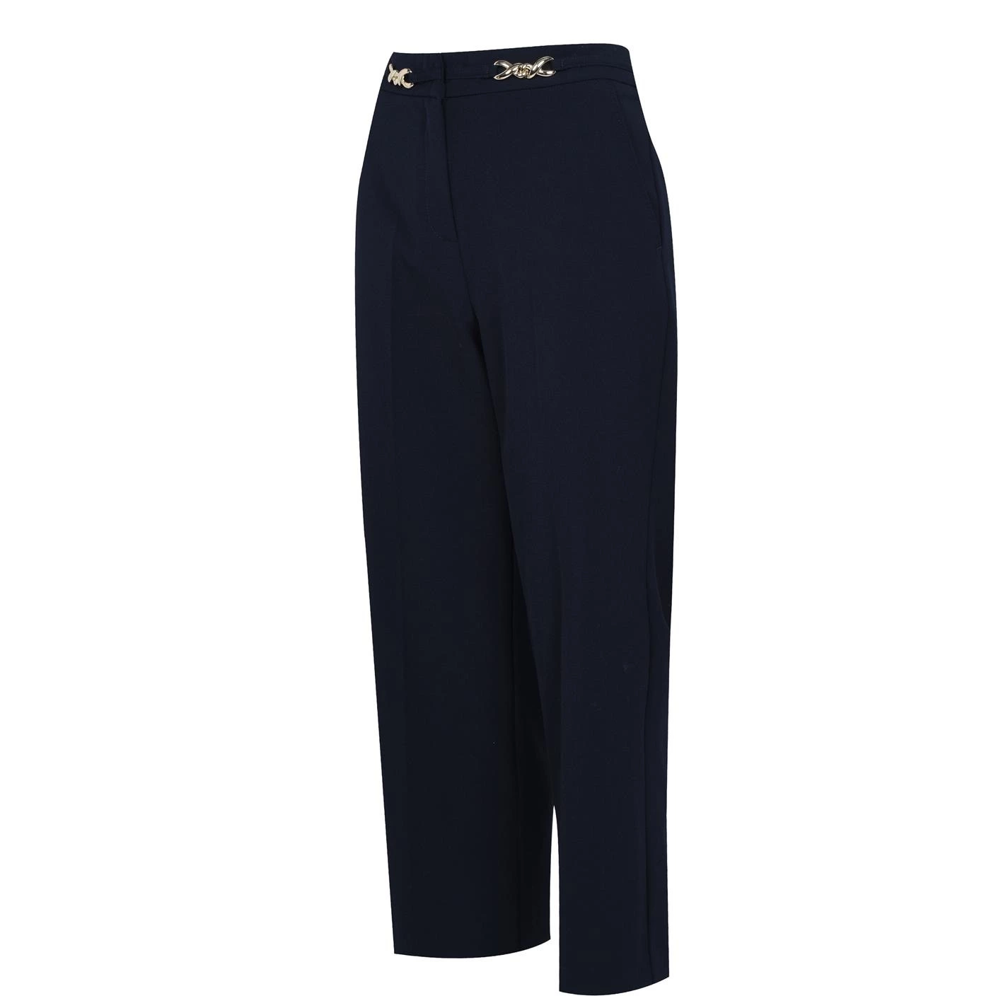 Elevate your collection with these Marella Fleur Trousers. Crafted with a hook fastening waist and zip up fly, 4 pockets and gold hardware chain detail for a classic look. These trousers are designed with a signature logo and are complete with Marella branding.
