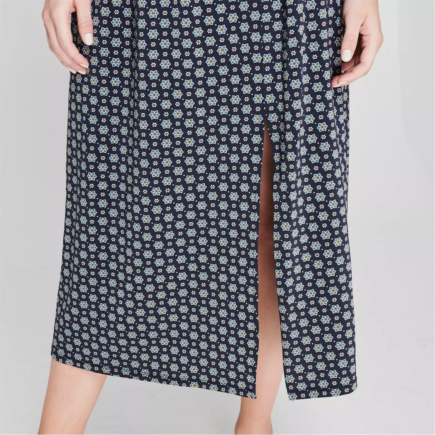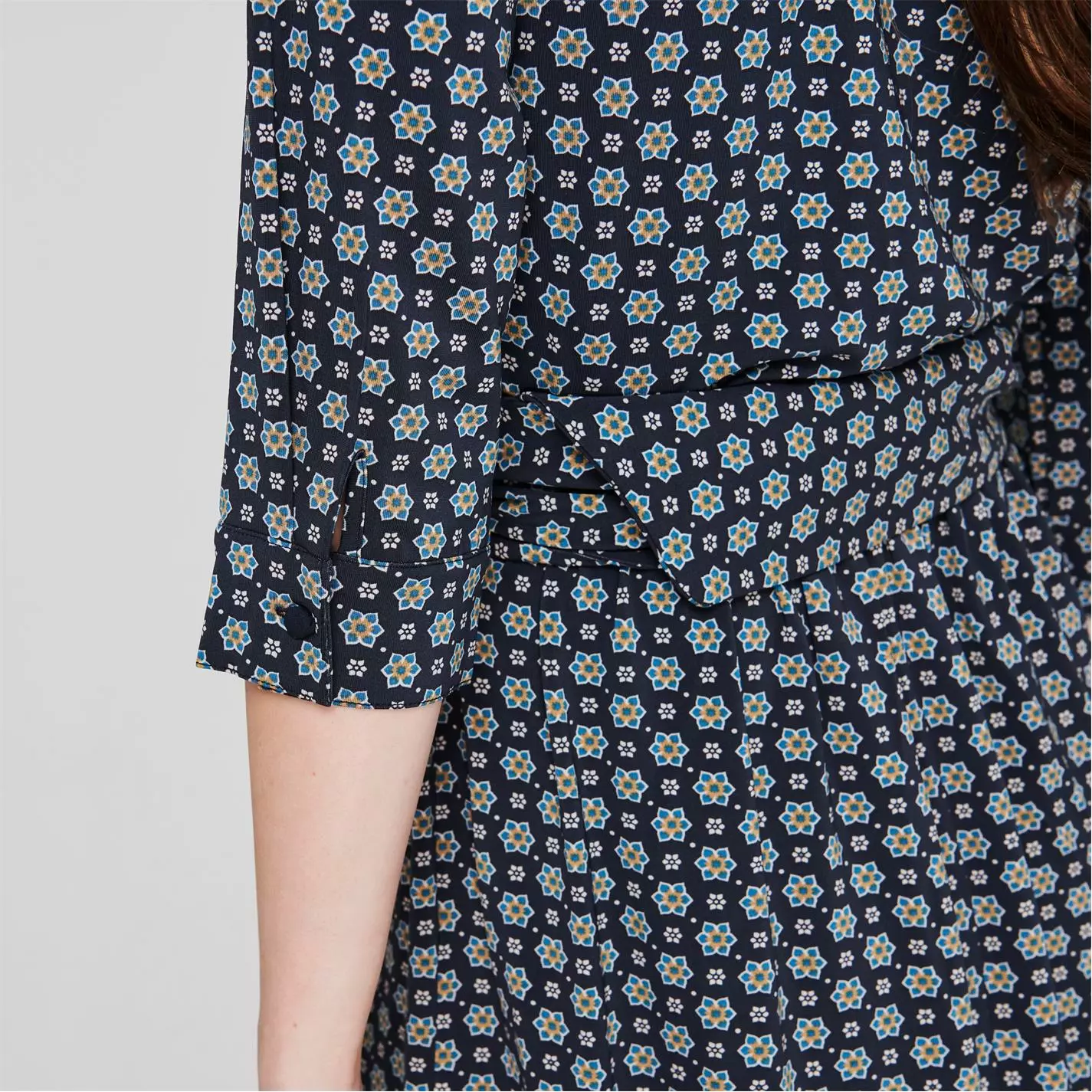 Step out in elegant style with the Franz Midi Dress. The design features long sleeves, a high neckline and a belt fastening. The dark toned pattern makes this dress a perfect option to slip into during the colder months paired with stiletto heels and the look is complete with Marella branding.