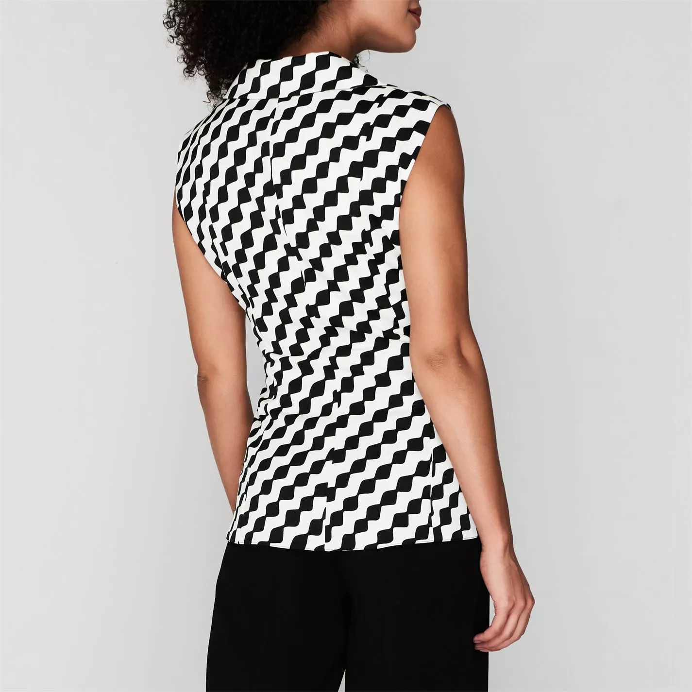 Make a statement in the Marella Giulio Shirt. A sleeveless design that features a relaxed lapel and tie waist to give a waistcoat effect. The monochrome pattern makes this an extremely versatile piece that you can pair with your casual ensemble.