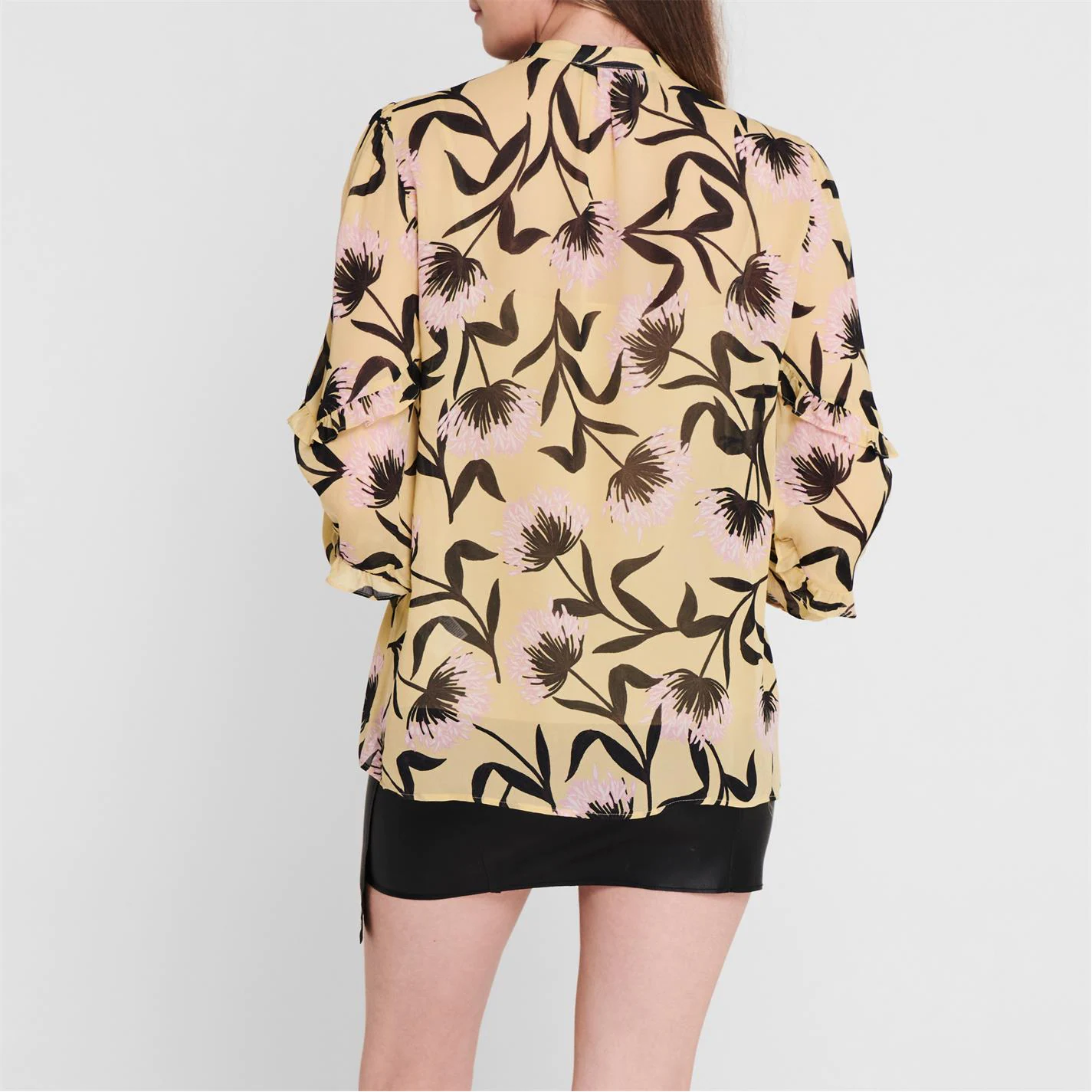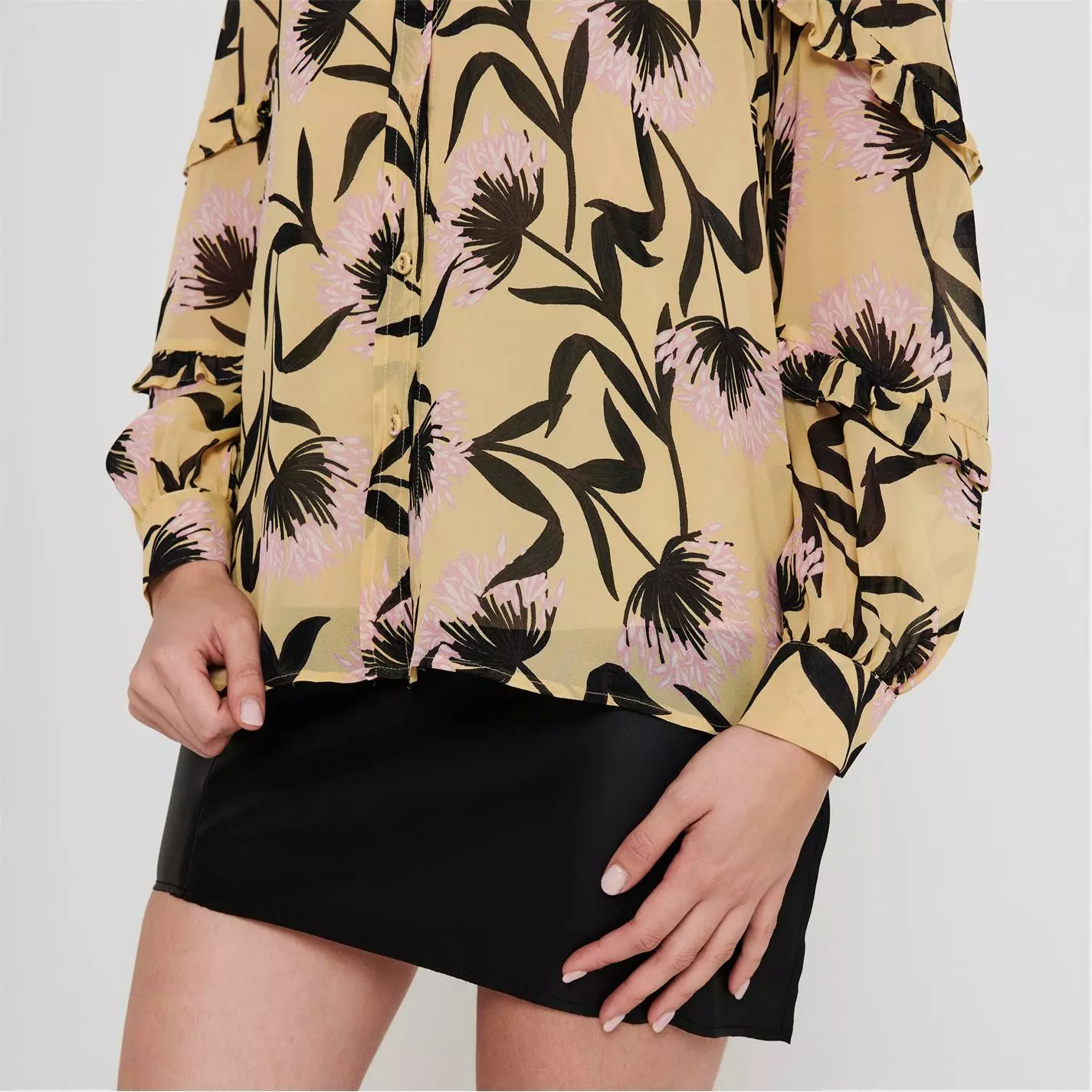 Made from a 100% Viscose fabrication, this blouse has been designed with an all-over floral print in a bold statement colourway. With an under slip top, this mesh blouse details a round neckline adorned with a full button fastening and long sleeves cuffed with button fastening, this look is complete with a classic silhouette detailed with a frill trim to the sleeve for a feminine touch, pair with trousers and flats for a casual look.