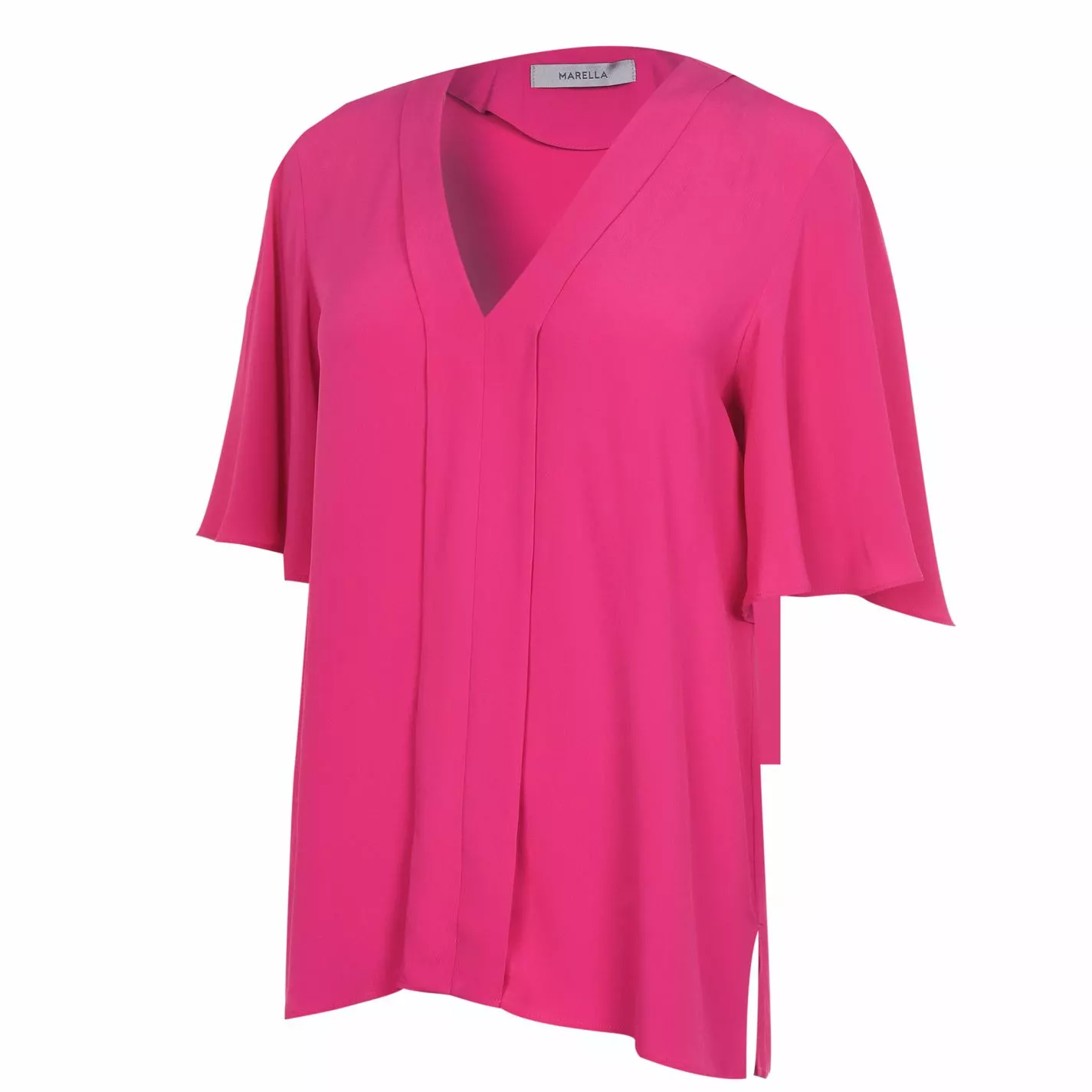 Enhance your collection with this Marella Canna Blouse. Constructed with short sleeves and a V neck for a classic look, it features ribbed trims for a comfortable fit. This blouse is designed with a signature logo and is complete with Marella branding.
