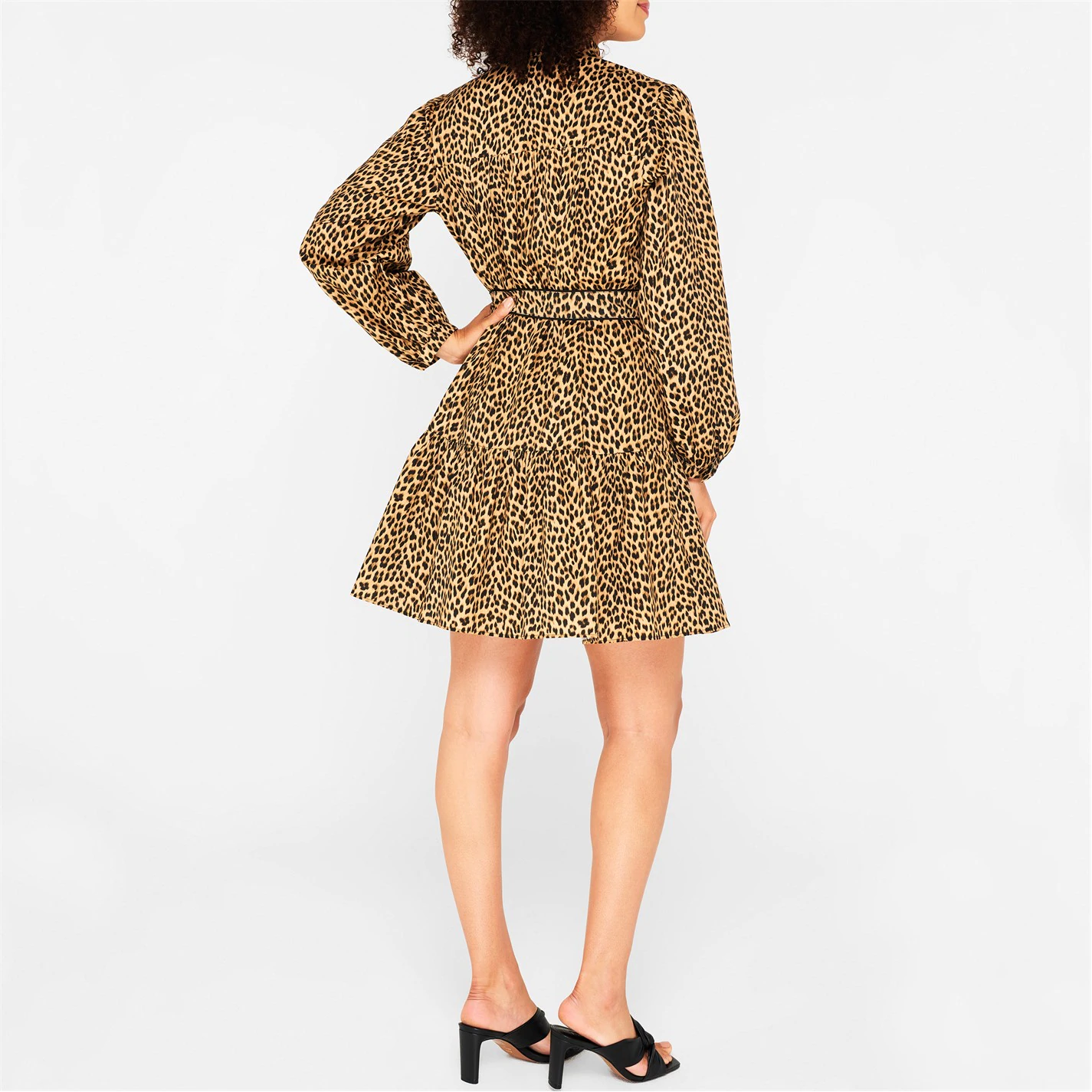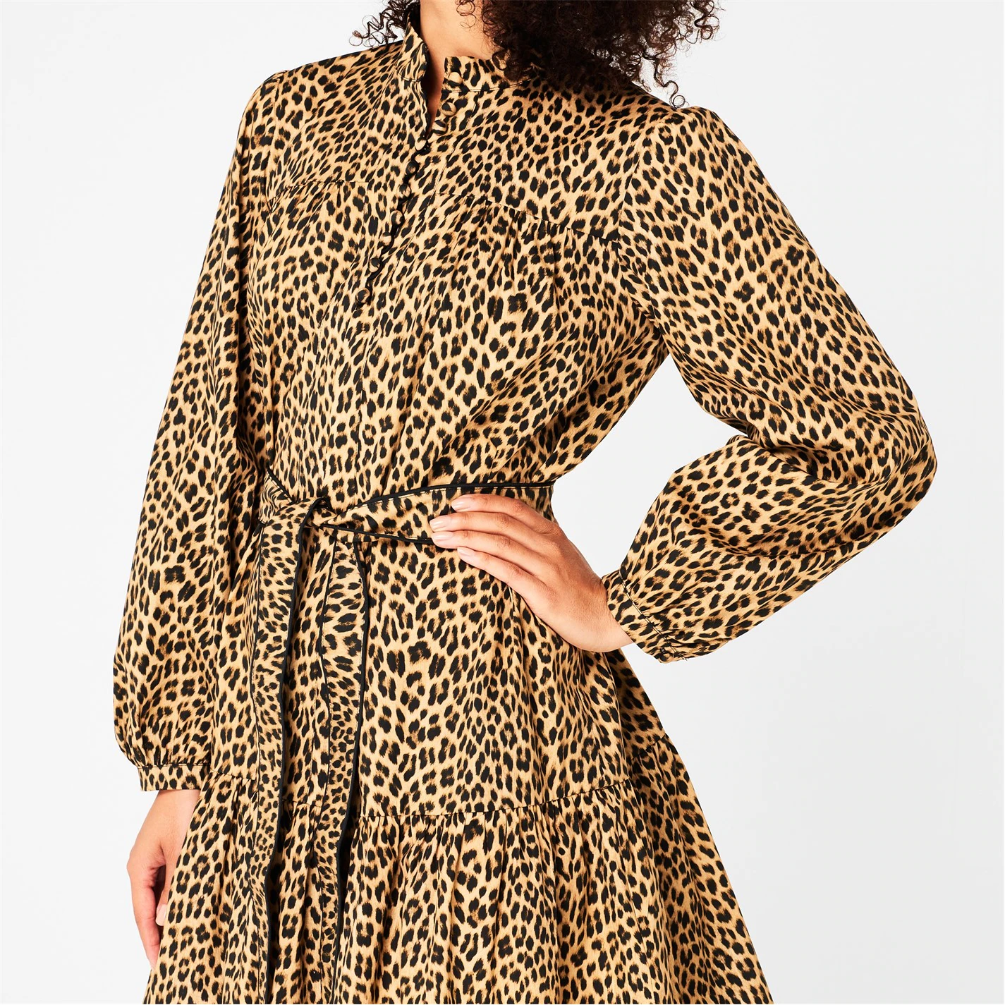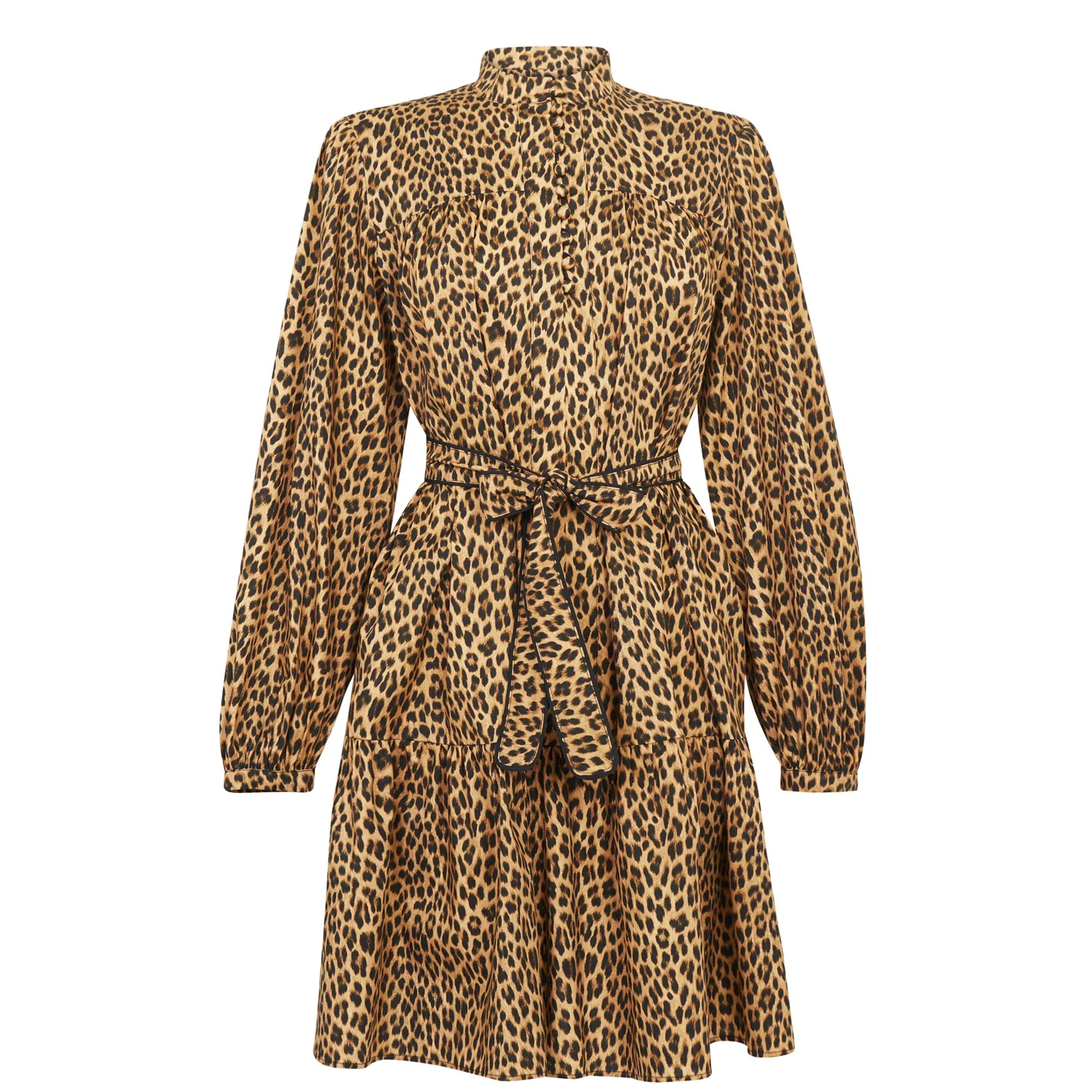 The Marella Persia Dress crafted with a high neckline with tonal button placket to the chest, puff detailed sleeves and frill skirt detailing with vibrant animal pattern throughout, the dress styles a tie waistband detailing that can be removed for additional styling, , the dress can be worn from day to day, easily dressed up or down.