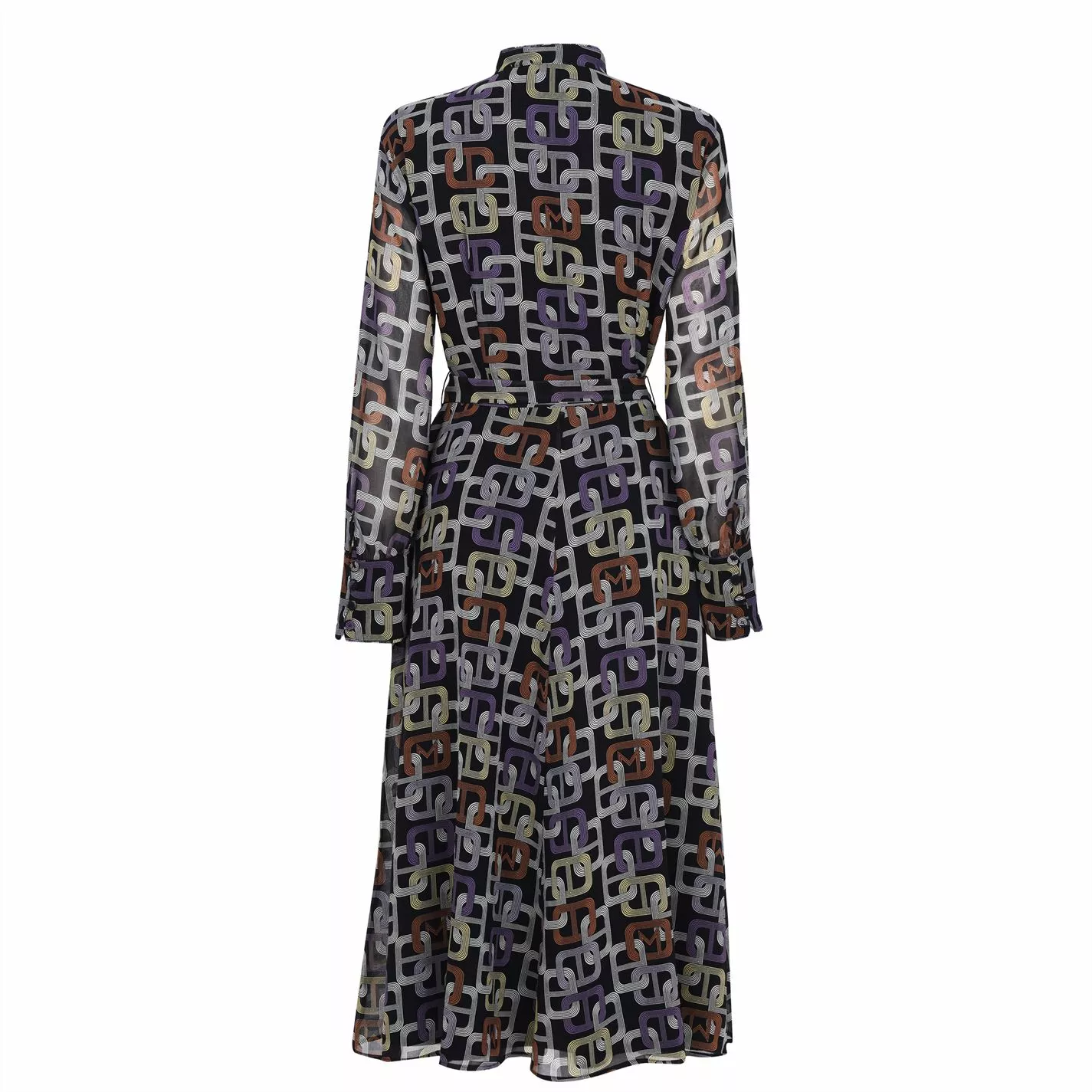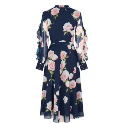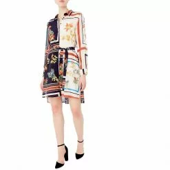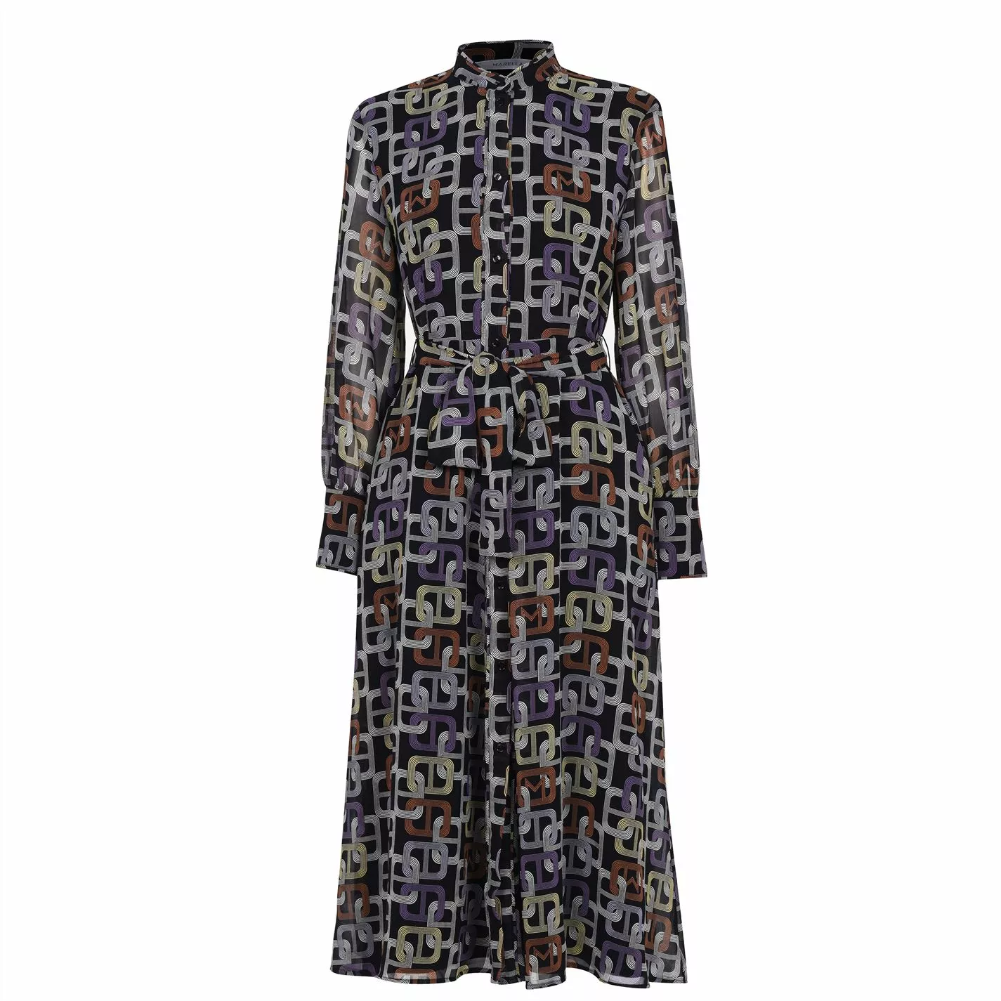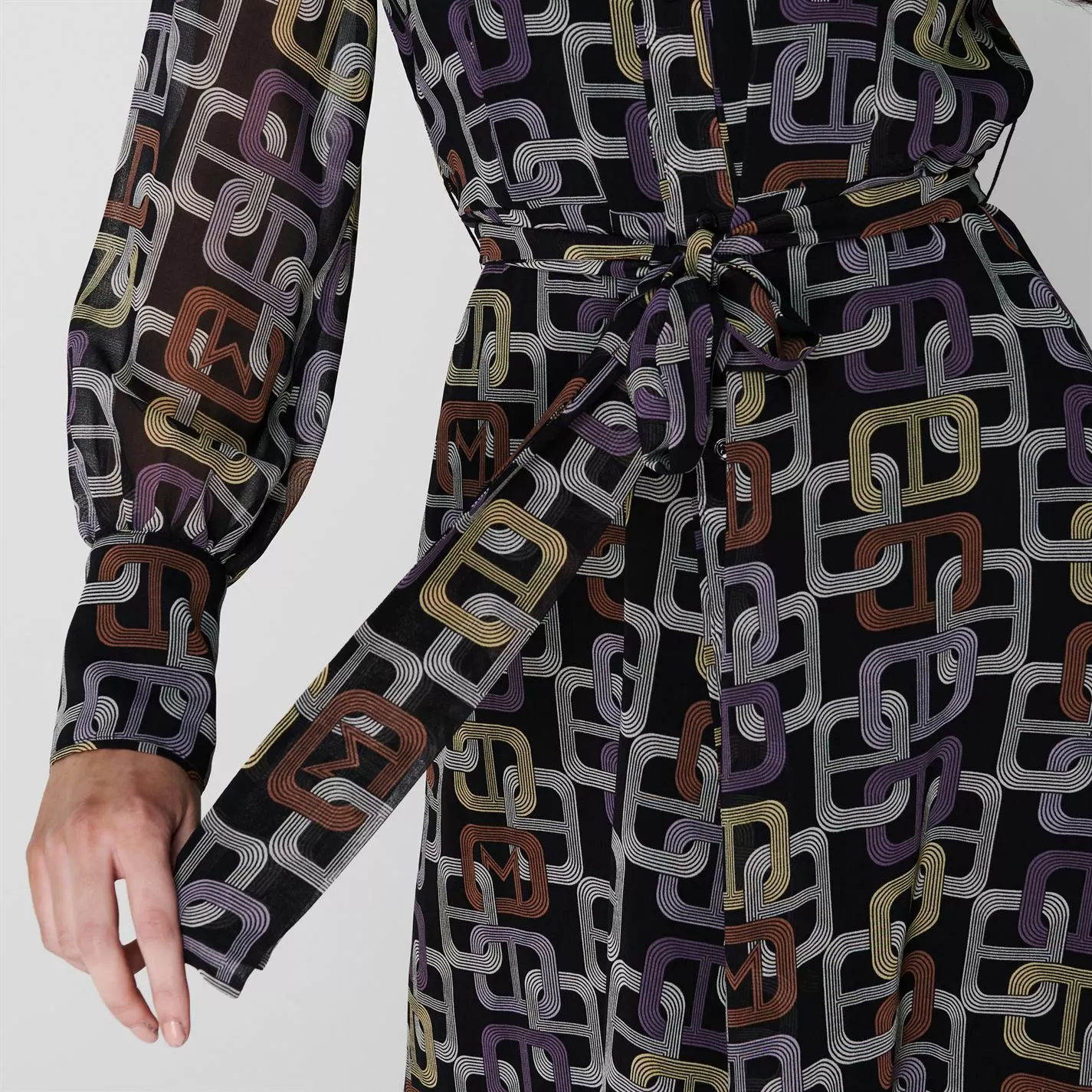 Step out in elegant style with the Zolder Midi Dress. The design features long cuffed sleeves, a buttoned neckline and a tie front fastening to create a shirt dress effect. The dark toned pattern makes this dress a perfect option to slip into during the colder months paired with stiletto heels and the look is complete with Marella branding.